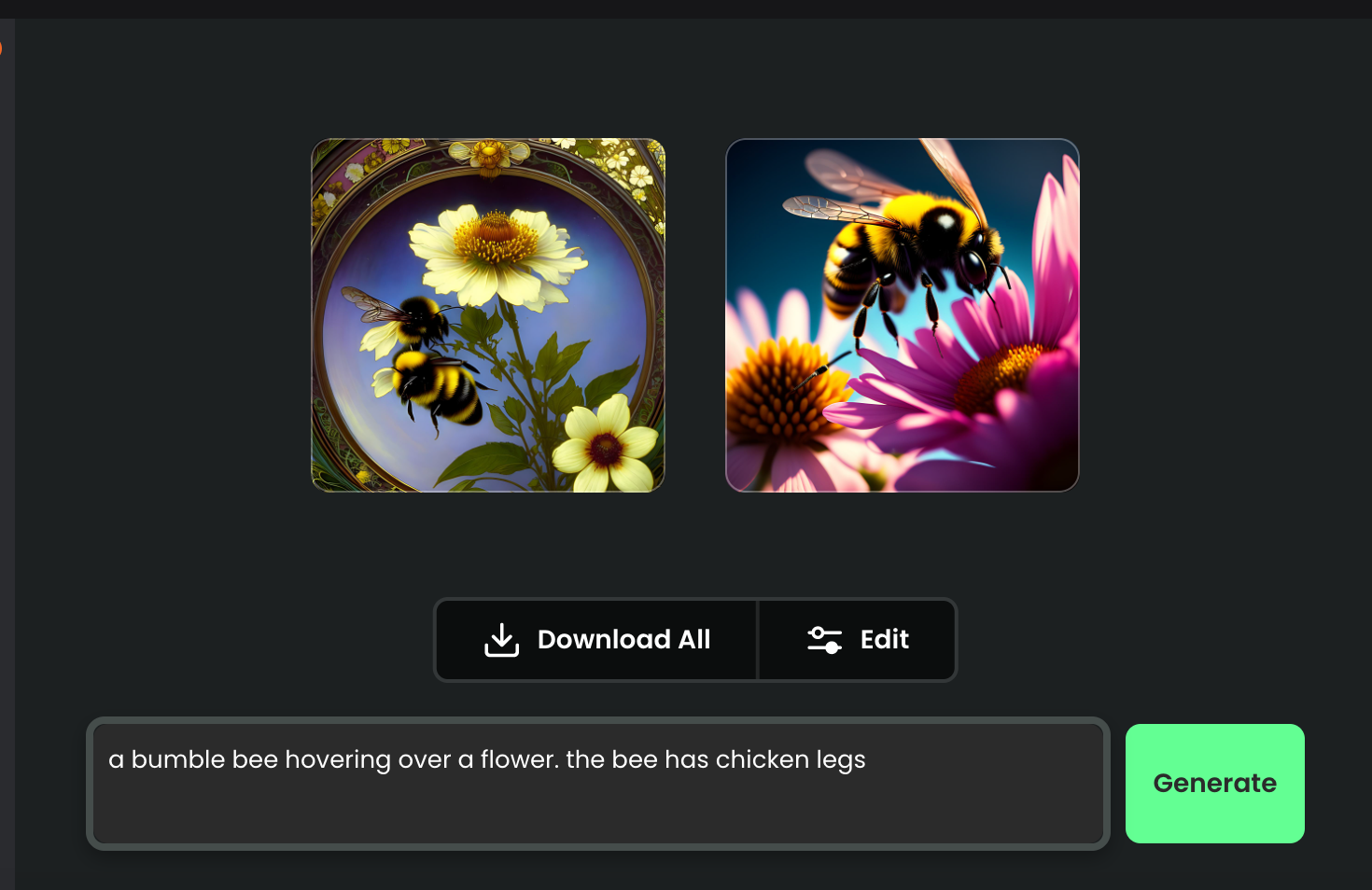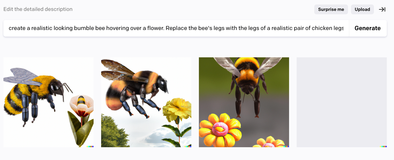 Question #2: Can AI art generators create a bumble bee with chicken legs?