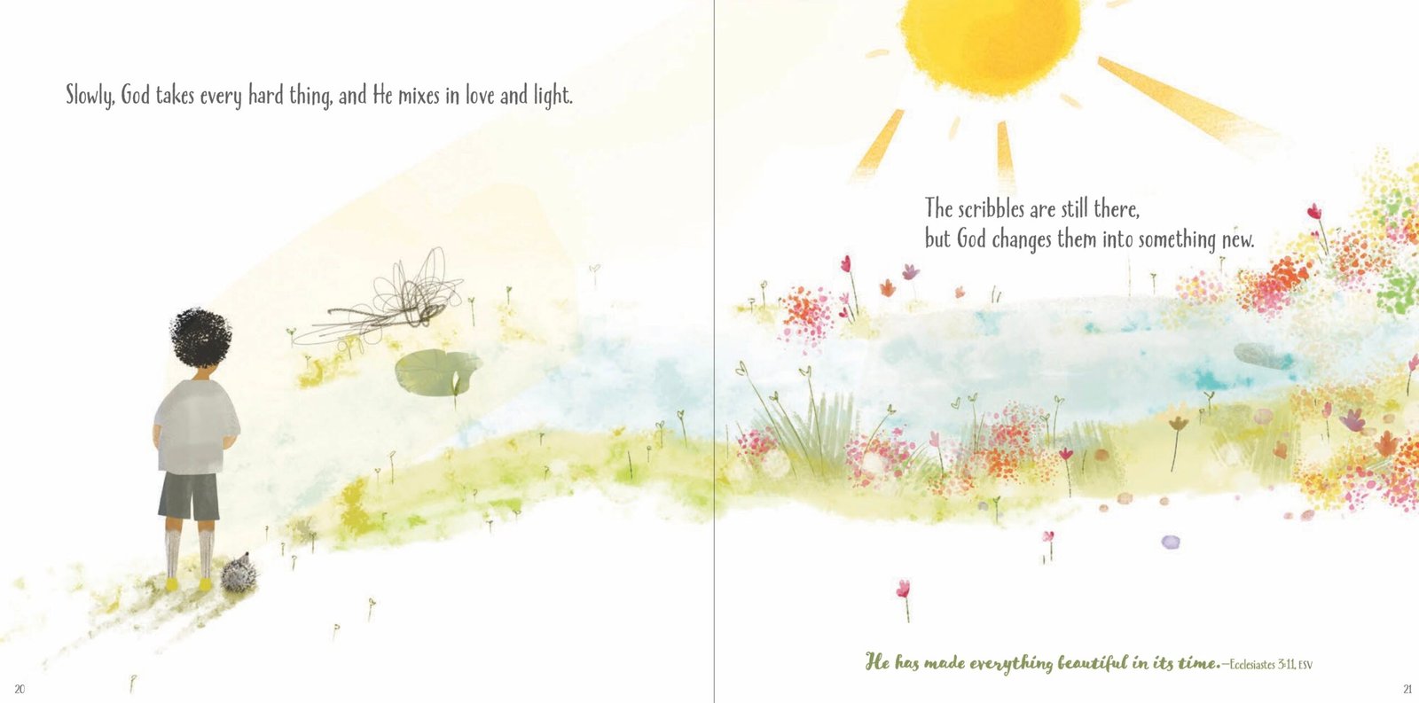 Sue: Yes! I can see how adults could use When God Makes Scribbles Beautiful to spark conversations with little ones about big issues, reassuring them of God’s promises to be with us through it all.