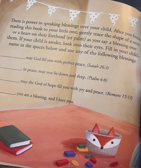 The foundational Scripture for this book is Isaiah 26:3, “You will keep perfect peace all who trust in you.” In the Bible, blessings are one of the main vehicles used to pass God’s love on to the next generation. Speaking words of love and peace over a child might seem small, but it creates a feeling of security and belonging that can last a lifetime.