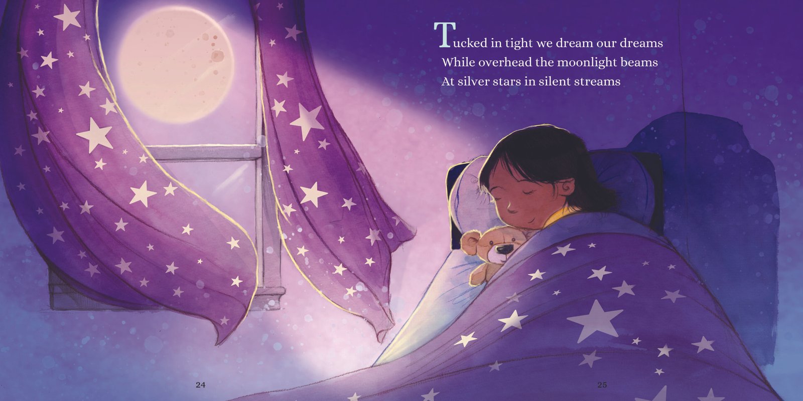 When Day Is Done is a quiet going-to-bed book that reassures children than even though it is time to sleep now, everything they love and want to do will still be there tomorrow. It is a rhyming book in which each stanza contains three lines that rhyme with each other, then a fourth line that is repeated at the end of each stanza. The manuscript began with the titular line that is repeated throughout. That phrase, “we sleep when day is done,” randomly appeared in my head one day and I liked the sound of it, so I decided to see what kind of a story or poem I could shape around it.