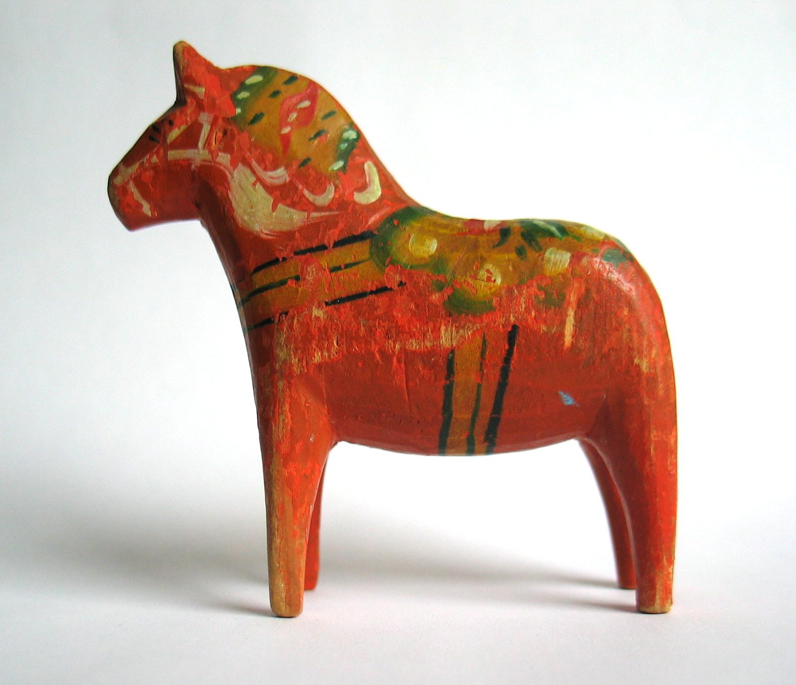 Sonja: A Dala horse is a carved, pine horse with a distinctive silhouette from a region in Sweden called Dalarna. The woodworkers there produced furniture painted in a “kurbits” art style—with "swishes, swirls, dots, and dabs.”