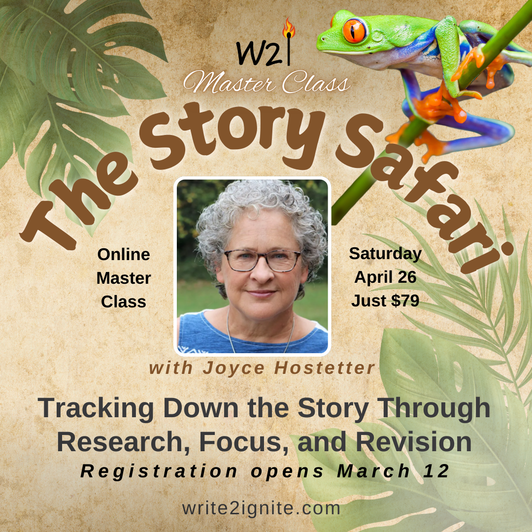 This past Saturday was our Master Class hosted by Joyce Moyer Hostetter: The Story Safari: Tracking Down the Story Through Research, Focus, and Revision. I read her Bakers Mountain series several years ago and thoroughly enjoyed it, so I was excited to get to learn more about her writing process.