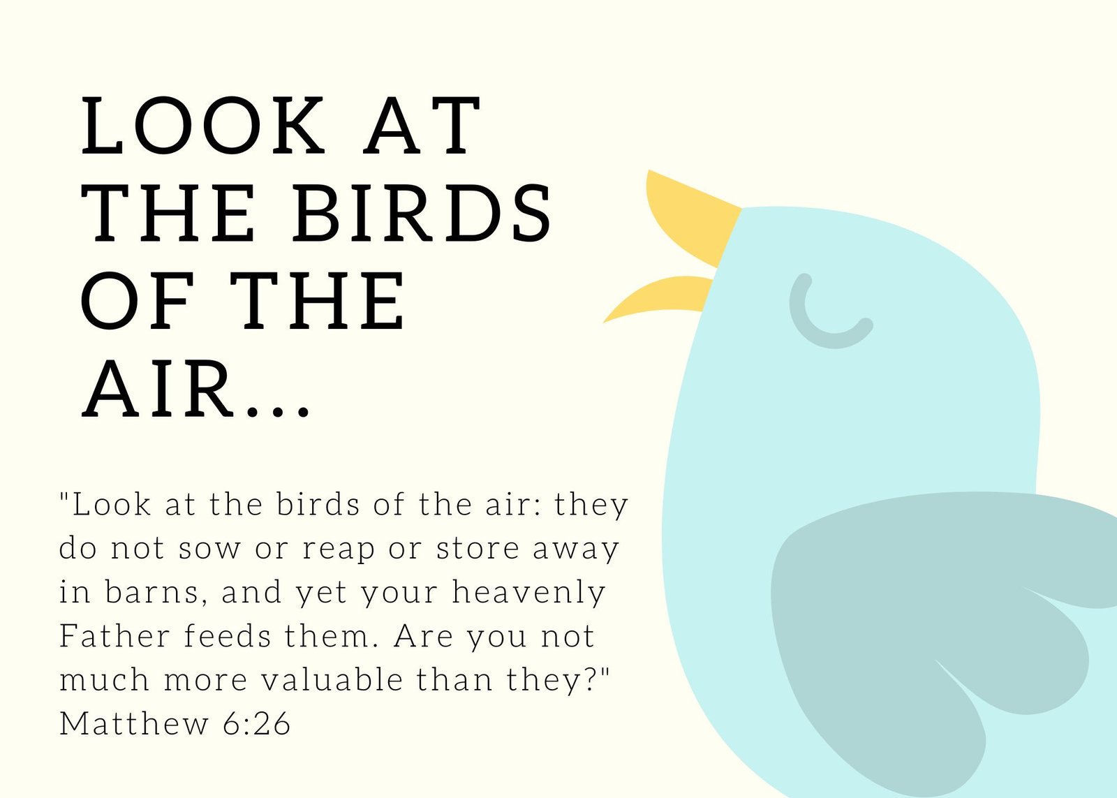 The Bible talks about how we are to learn life lessons from the birds. Matthew 6:26 says, “Look at the birds of the air; they do not sow or reap or store away in barns, and yet your heavenly Father feeds them. Are you not much more valuable than they?â€Â Â