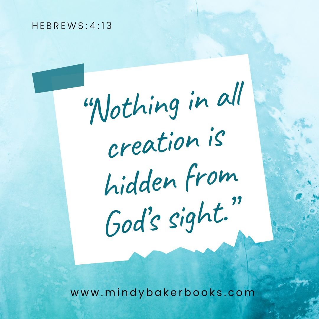 Recently God encouraged me with this verse in Hebrews 4:13, “Nothing is hidden from God’s sight.†I know the passage references the fact that God knows our sin, but God used it to help me with three additional applications.