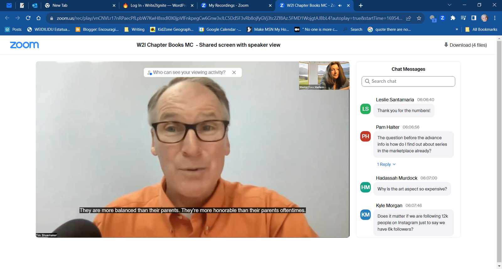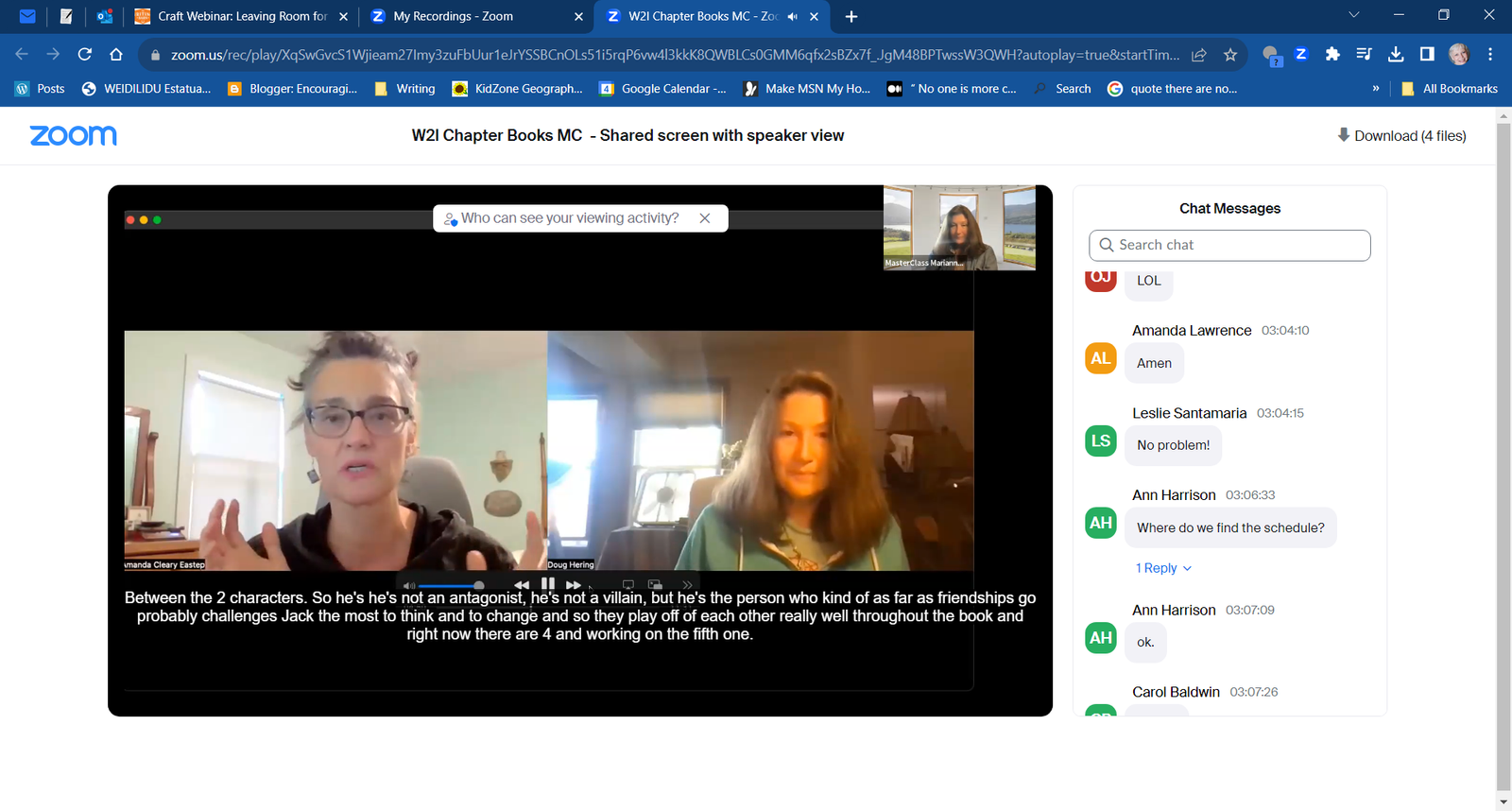 Marianne brought the wisdom of several other children’s writers into the mix, too. The recorded interviews she shared were super informative.