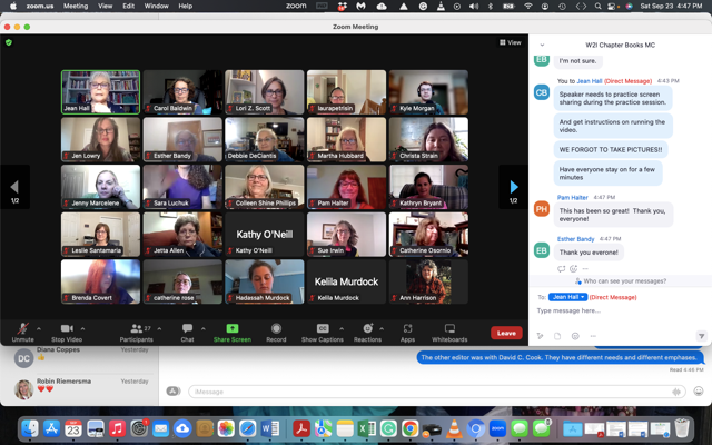 - Excellent, thorough preparation by Marianne Hering; helpful and encouraging editor presentations, and great discussions in breakout groups. Deb